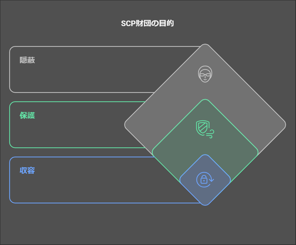 3. 隠蔽: SCPオブジェクトに関する情報が公に広まらないよう、徹底した管理を行います。